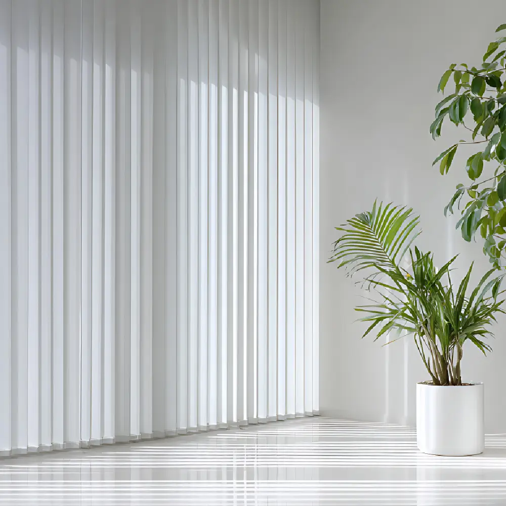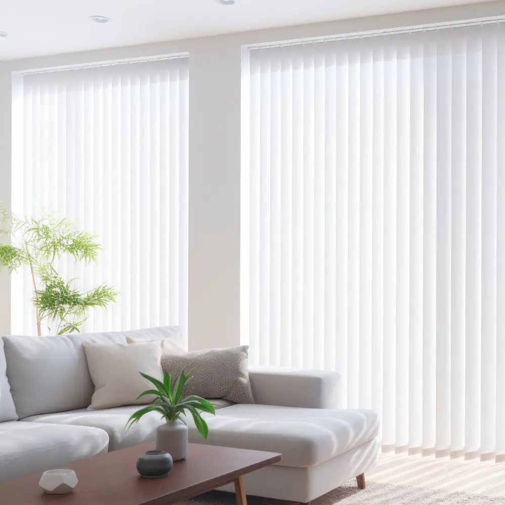 Dans un salon, on souhaite laisser entrer la lumière du soleil, mais pas les regards indiscrets. Sur les baie vitrées, vous pouvez opter pour un store californien, également appelé store à bandes verticales. Ce store coulissant se fixe au mur ou au plafond et fonctionne grâce à un mécanisme à chaînette ou à un chariot coulissant muni de clips.